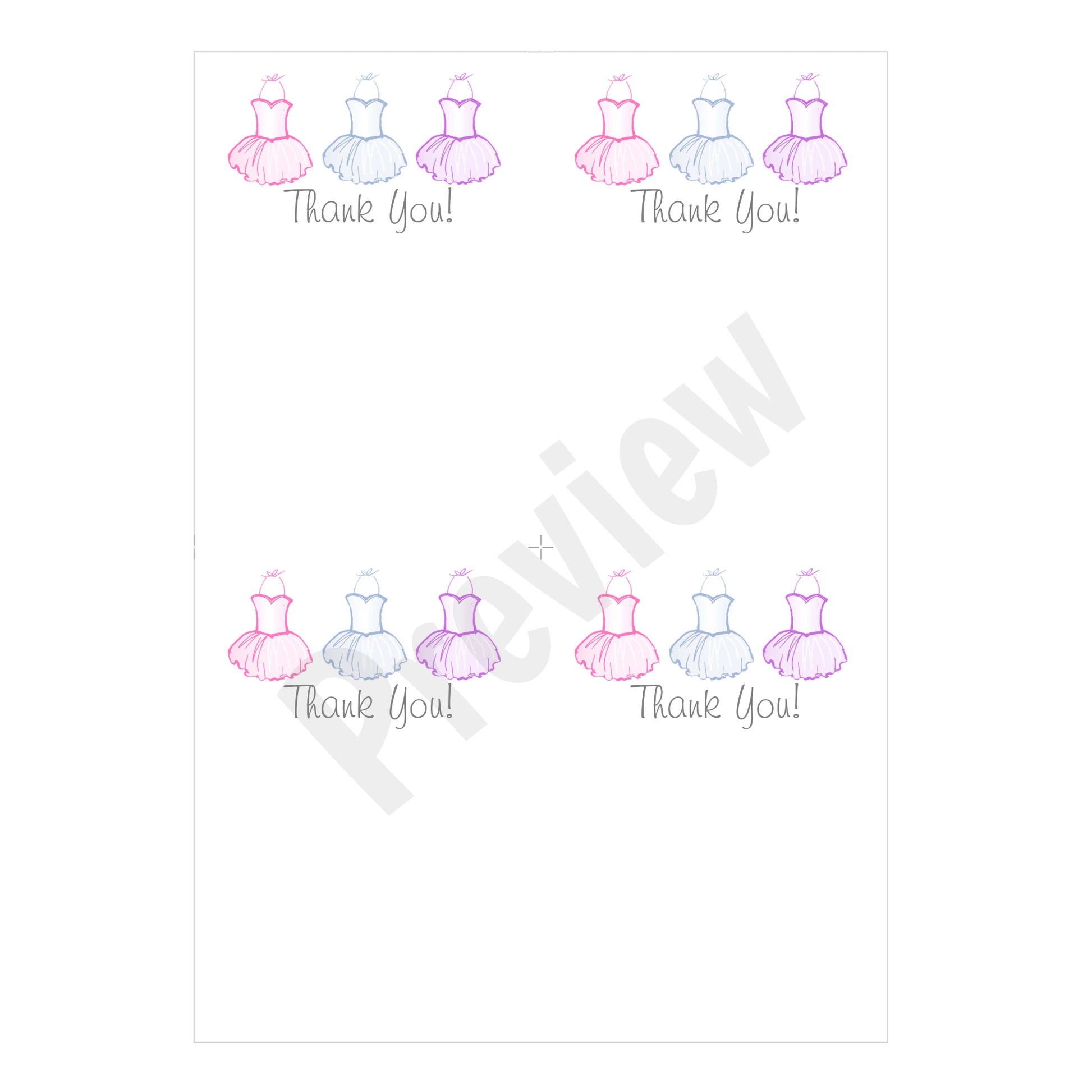 This downloadable PDF includes four ballet-themed thank you, each sized 3.5 x 5 inches. Perfect for expressing gratitude with a professional touch, these notes are easy to print and customize for your event needs.